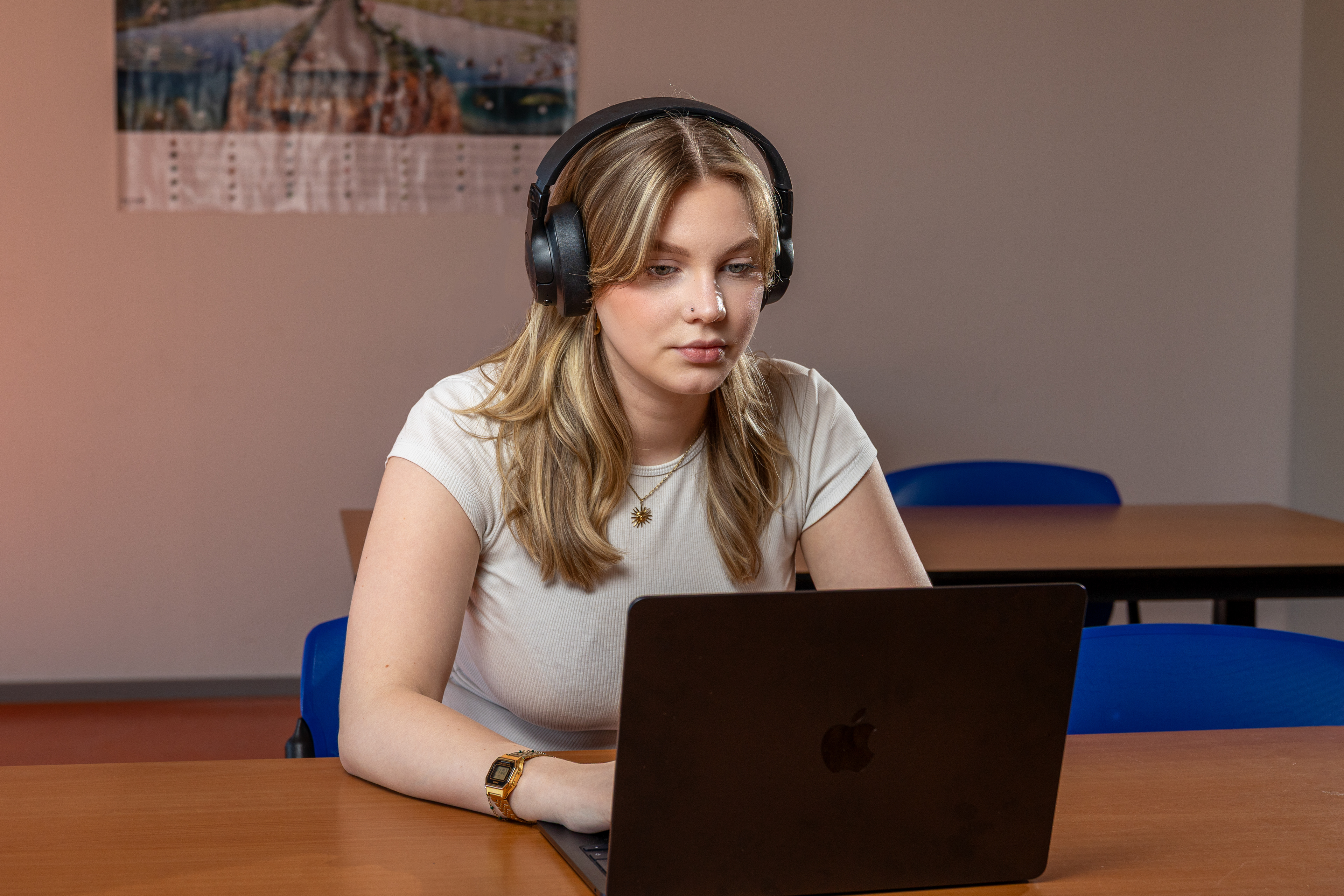 In deze fotoserie staat leren en samenwerken centraal. Ik heb studenten en jonge professionals vastgelegd tijdens overleg, studie en individueel werk. Door een combinatie van spontane momenten en gecontroleerd licht ontstaan beelden die focus, betrokkenheid en professionaliteit uitstralen.